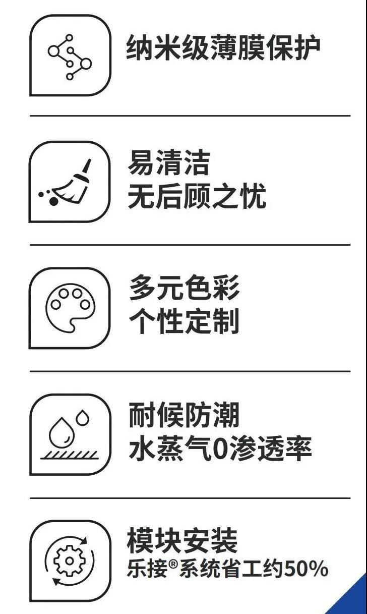 抗污系列鋁復(fù)合板基材通過表面化學(xué)處理,制得的納米表面薄膜表面張力小,疏水性更強(qiáng),與普通鋁復(fù)合板相比,更易清潔,保潔可節(jié)省人工約50%,具有