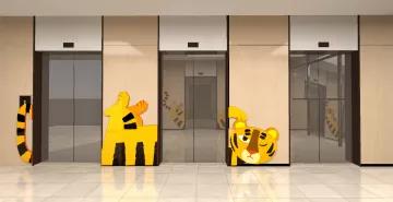 方案對傳統《十二生肖》造型形象運用了正負形態轉換的表現方式.進行重構和重組.吸納當代藝術中構成手法和色彩表現力,并選用當代新型的有機材料進行制作和呈現,把渾厚的生肖動物造型形態與多變的視覺認知融為一體.有效地重塑和活化了呆 無趣的候診空間,就診兒童通過對十二生肖形象的尋找,每個人都可以對號入座,找到與自己的屬相相應的對象,這樣可以促使孩子們在觀看中,觀察和體驗周邊活潑可愛、醒目親切的藝術氛圍。透過對豐富色彩和通透造型的認知過程,增添了對視覺的知識建構和候診的樂趣,讓乏味的候診變得豐富而有趣。